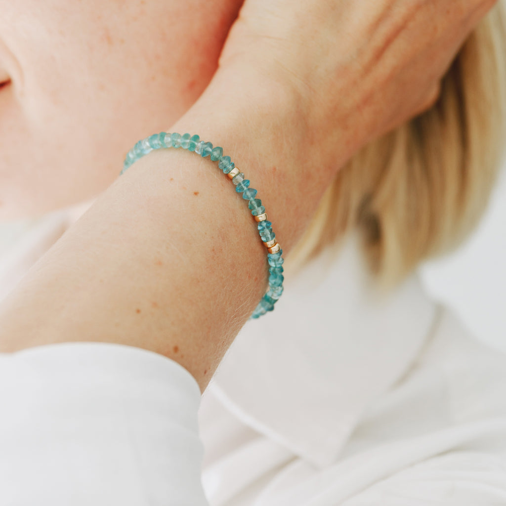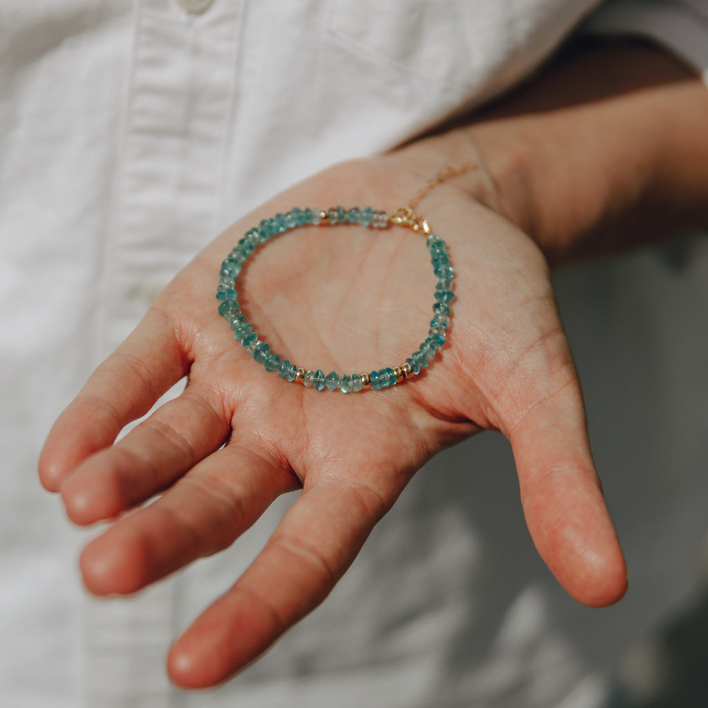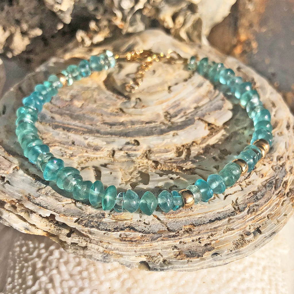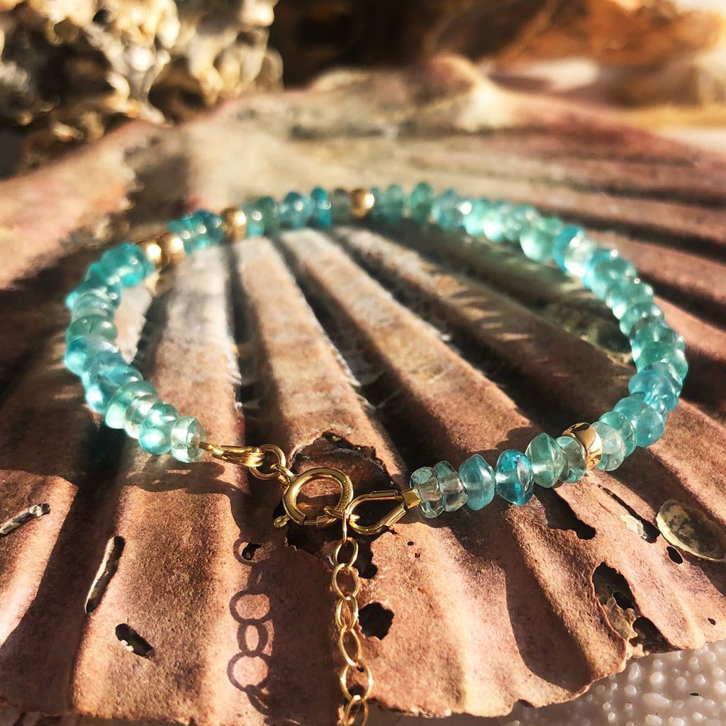 This blue-green Apatite bracelet is handcrafted to adore ocean-inspired shades. The bracelet is made with high-quality crystals 4-5 mm in size alternated with 14K Gold Filled beads.