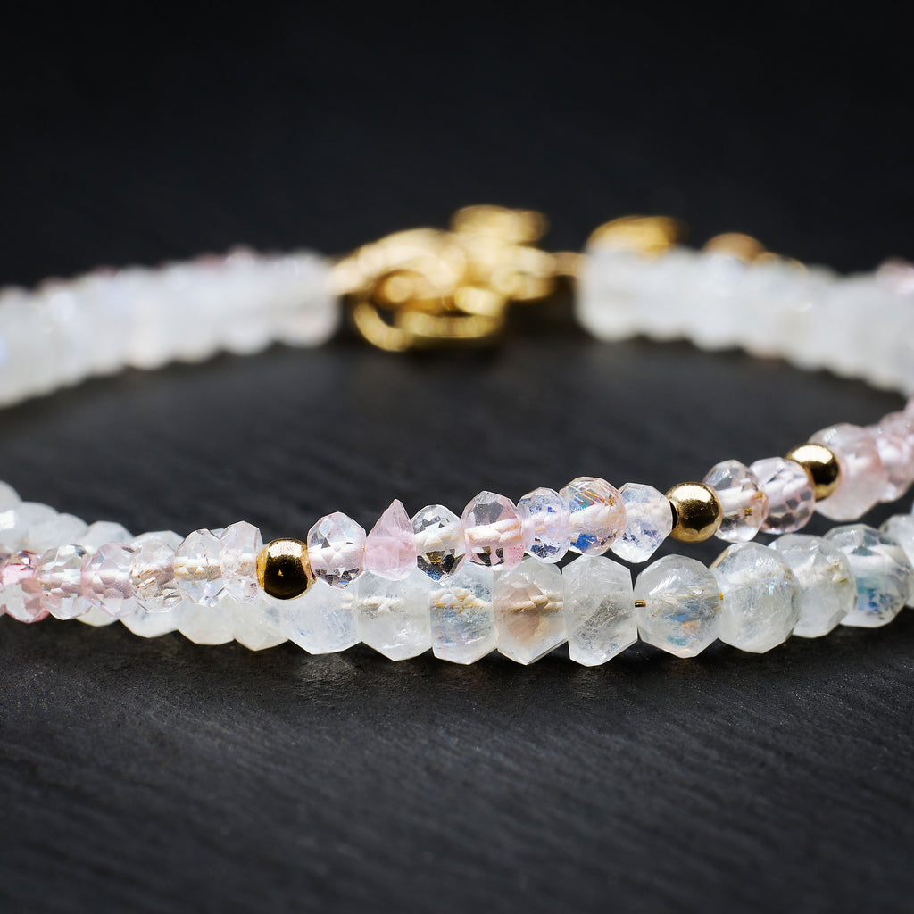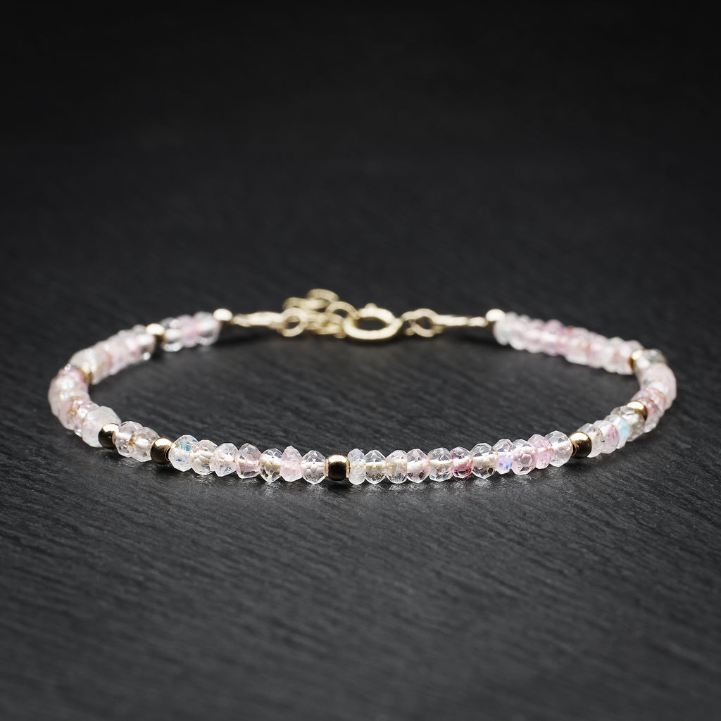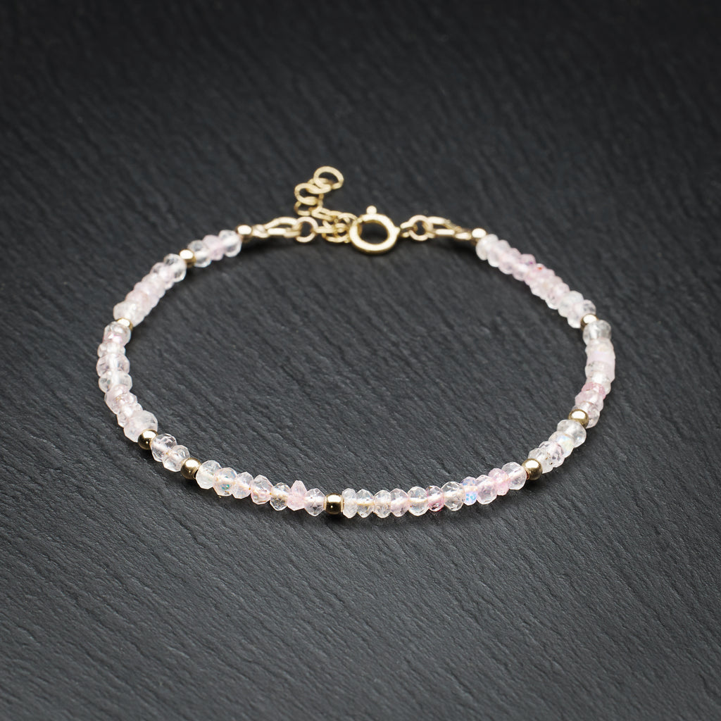 The delicate Rose Quartz bracelet is made of genuine AAA Grade Rose Quartz faceted 4 mm beads alternated with 14K Gold Filled 2.5 mm beads.