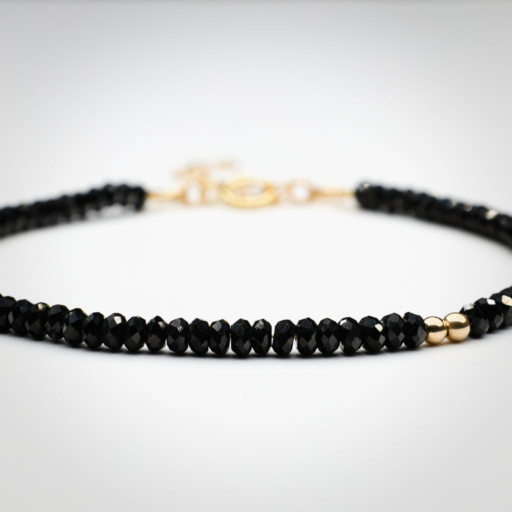 This bracelet has AAA Grade 4 mm faceted Black Tourmaline crystals and 14K Gold Filled beads for the highest empath protection.