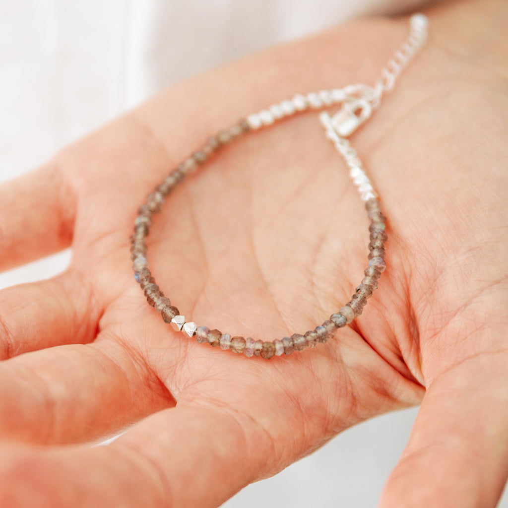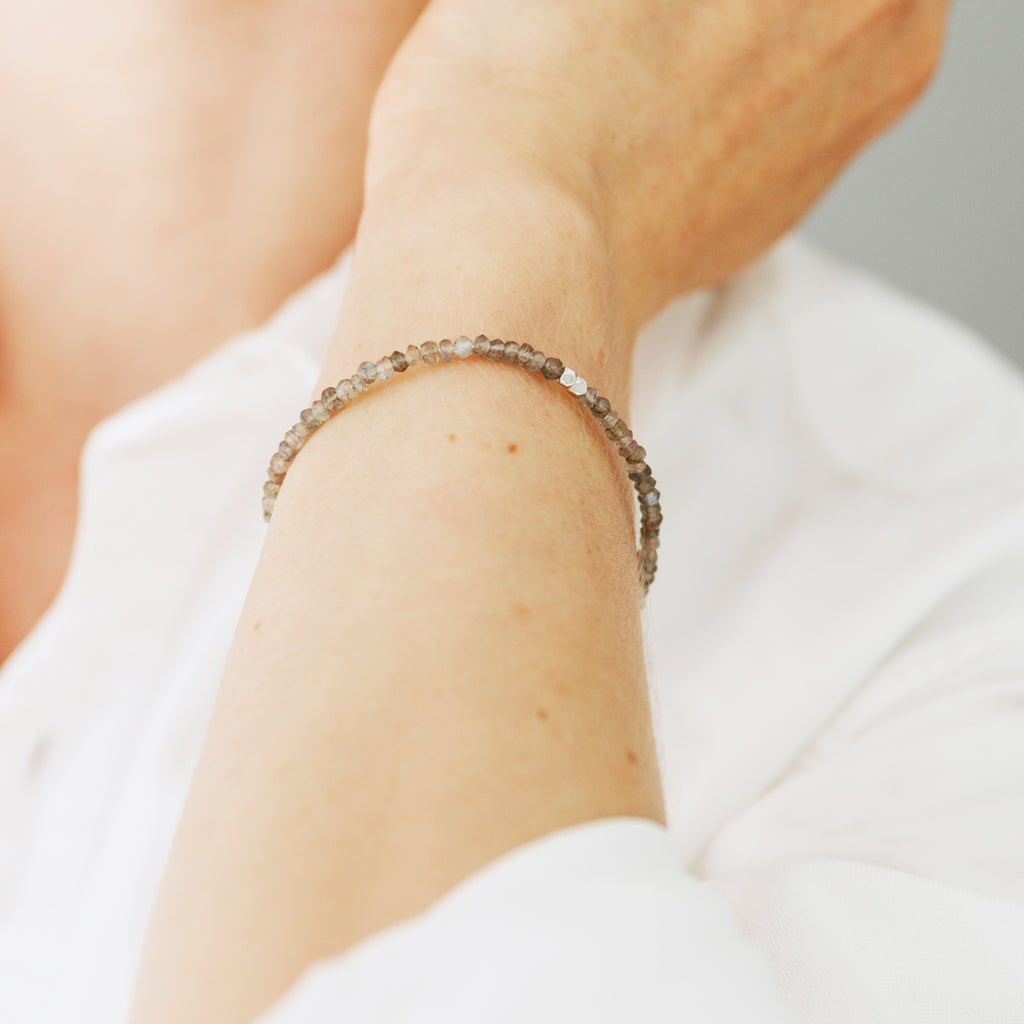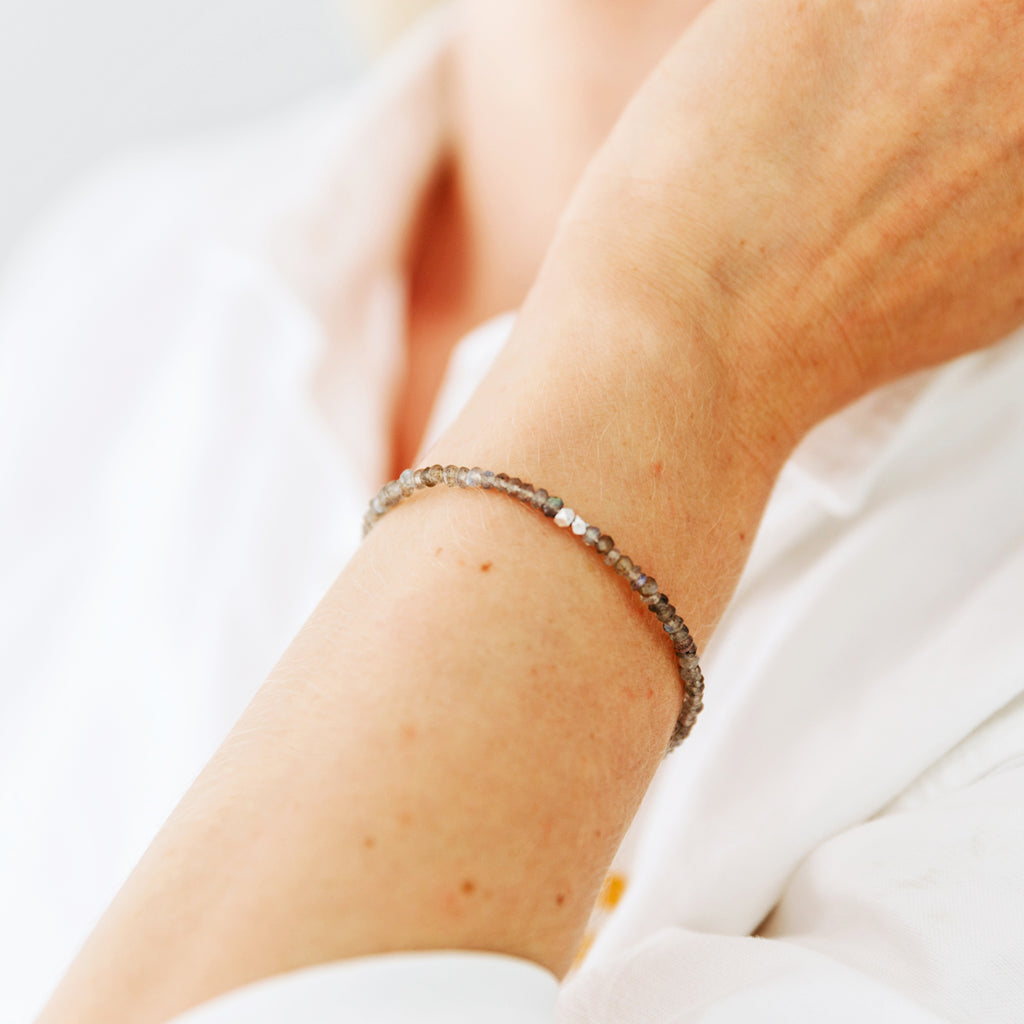 Elevate your wrist game with this stunning Labradorite bracelet and embrace the beauty of its enchanting flashes. Perfect to wear solo and ideal for stacking!
